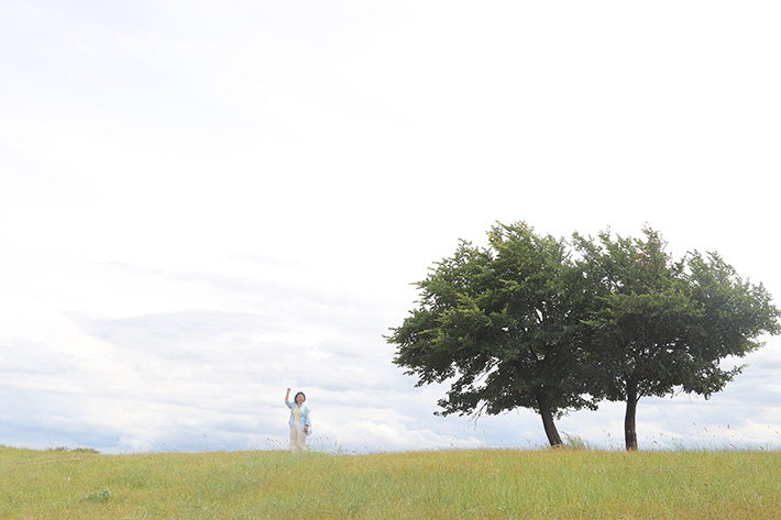 Une visiteuse immortalise son passage dans la zone sableuse de Horqin, ligue de Hinggan, région autonome de Mongolie intérieure, le 29 juillet. (HU FAN)