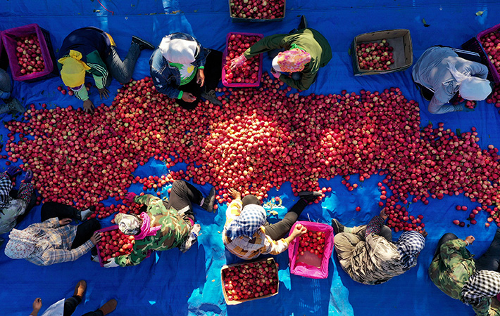 Des agriculteurs trient des pommes à Tongliao, région autonome de Mongolie intérieure.
