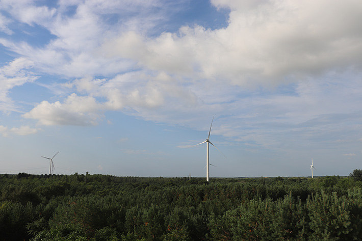 Des éoliennes s’élèvent au-dessus de la forêt dans le bourg de Nugusitai, à Tongliao, région autonome de Mongolie intérieure, le 28 juillet. (PHOTOS : HU FAN)
