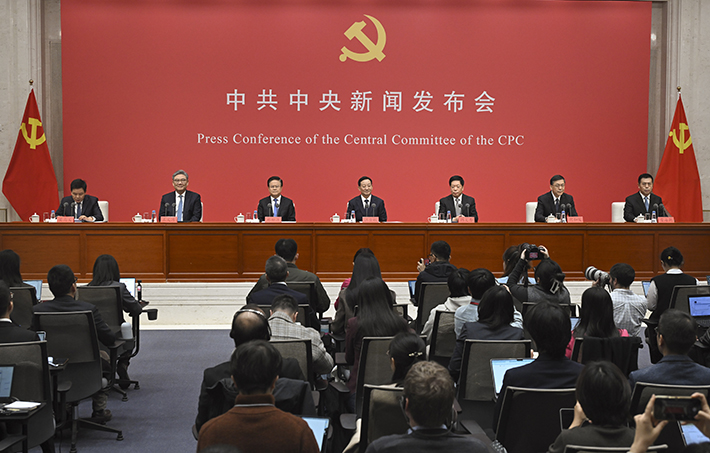 Conférence de presse du Comité central du PCC sur la quatrième session plénière du XXe Comité central du PCC tenue à Beijing, le 24 octobre. (XINHUA)