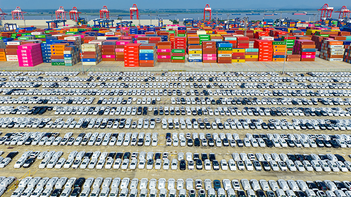 Voitures destinées à l’exportation au port de Nanjing, province du Jiangsu, le 4 octobre. (XINHUA)